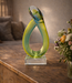 Im Herzen des Objekts verschmelzen tiefe Grüntöne und klares Blau wie ein Echo der Natur, des Wassers und des Wachstums. Eine Schicht aus klarem Kristallglas umgibt diese Farben und fängt das Licht ein, das es weiterleitet. Dadurch wirkt das Ganze leicht und transparent. Das Zusammenspiel von Farbe und Klarheit verleiht der Skulptur eine besondere Tiefe und Ruhe.