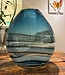 „Breath of Silence“ ist eine handgefertigte Glasvase, mit blauer Oberseite und weißer Unterseit..