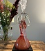 Aus ihrem Haupt erhebt sich eine Krone aus gewelltem Haar, das wie unlöschbare Flammen wirkt. In ihrer Hand ruht der Regenschirm, ein Symbol für Schutz und Standhaftigkeit inmitten von Unwetter und Sturm. So verkörpert Kjell Engmans Kreation die Essenz der Weiblichkeit, ein Zusammenspiel von Anmut, Widerstandsfähigkeit und innerer Kraft, die immerwährend strahlt, egal, was ihr begegnet. Die Skulptur ist 46 cm hoch. (160 cm inklusive Beleuchtung mit dazugehöriger Säule).