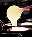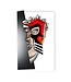 Wandskulptur „Ironman“ aus gegossenem Kristall und Edelstahl nach einem Entwurf von Mats Jonasson. Die Skulptur ist auf einer weißen Holzplatte montiert.