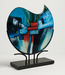 Das handgefertigte Objekt ist aus hochwertigem Glas gefertigt und wird auf einem eleganten schwarzen Ständer präsentiert. Durch die Transparenz und Struktur des Glases verändert sich das Werk subtil mit dem einfallenden Licht, sodass immer wieder neue Akzente sichtbar werden. Die Gesamthöhe dieses Kunstwerks beträgt 47 cm.