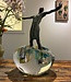 Dit unieke kunstwerk, getiteld "Balans," is een elegant bronzen beeld dat moeiteloos harmonie en stabiliteit uitstraalt. Het beeld, met zijn vloeiende lijnen en zorgvuldig uitgehouwen vormen, vangt de essentie van evenwicht in een tijdloze compositie. Het staat majestueus op een mondgeblazen glazen podium, dat speciaal voor dit kunstwerk is ontworpen. Het podium zelf is een kunstwerk op zich, vervaardigd van hoogwaardig glas en verrijkt met subtiele blauwe accenten die het bronzen beeld prachtig completeren. De combinatie van het warme brons en het koele, transparante glas creëert een visueel spektakel dat de zintuigen prikkelt en elke ruimte een verfijnde uitstraling geeft. Dit sculptuur is niet alleen een ode aan de kunst van het balanceren, maar ook een indrukwekkende toevoeging aan elk interieur. Het prachtige beeld heeft een hoogte van 32cm en een breedte van 23cm. Het object is te bezichtigen in de galerie van Kristal-Glas te Leerdam.