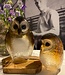 Met een hoogte van 24 cm is dit beeld een indrukwekkend en opvallend object dat zich goed leent voor een prominente plaats in uw interieur. Het gedetailleerde ontwerp van de uil is zowel krachtig als elegant, waardoor het een symbolisch en decoratief meesterwerk is. Dit beeld (de linkse grote uil op de afbeelding) is niet alleen een kunstwerk, maar ook een symbolisch item, vaak geassocieerd met wijsheid, mysterie en bescherming.