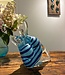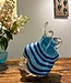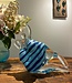 Met haar armen speels in de lucht en haar gestreepte badpak in verfrissende blauwtinten is deze glazen dame een ode aan zomerpret, zelfliefde en vrijheid. Ze balanceert op haar heupen alsof ze net een duik heeft genomen in het leven zelf onbevangen en vol plezier.
