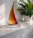 Slanke kristallen sculptuur met warme overgang van goud naar amberrood. Vangt het licht als een zeil..