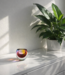 Door het invallende licht ontstaat een levendig kleurenspectrum dat vanuit iedere hoek verandert. De transparante buitenlaag versterkt de dieptewerking van de kleurrijke kern, waardoor de vaas niet alleen een decoratief object is, maar een echte blikvanger met karakter.
